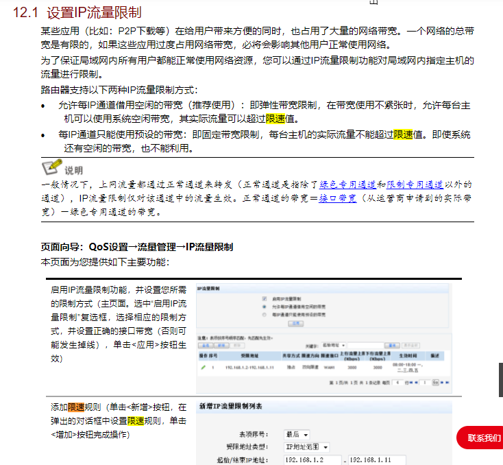 路由器支持以下两种IP流量限制方式: