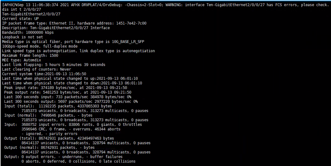 看到有CRC的错误统计,看下是否还增长,如果不增长就不用关注。