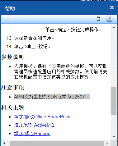 您好,目前组网安装U-Center1.0 E0705P12版本,配套APM版本为(E0707L06),在监控SDN时,提示应用探测失败,查看默认视图下帮助之后,发现帮助中说APM支持监控的版本为E2507