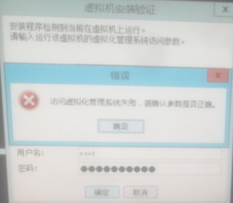 计划重新认证宿主机后重启进程服务测试,但验证过程提示 访问虚拟化管理系统失败,请确认参数是否正确。