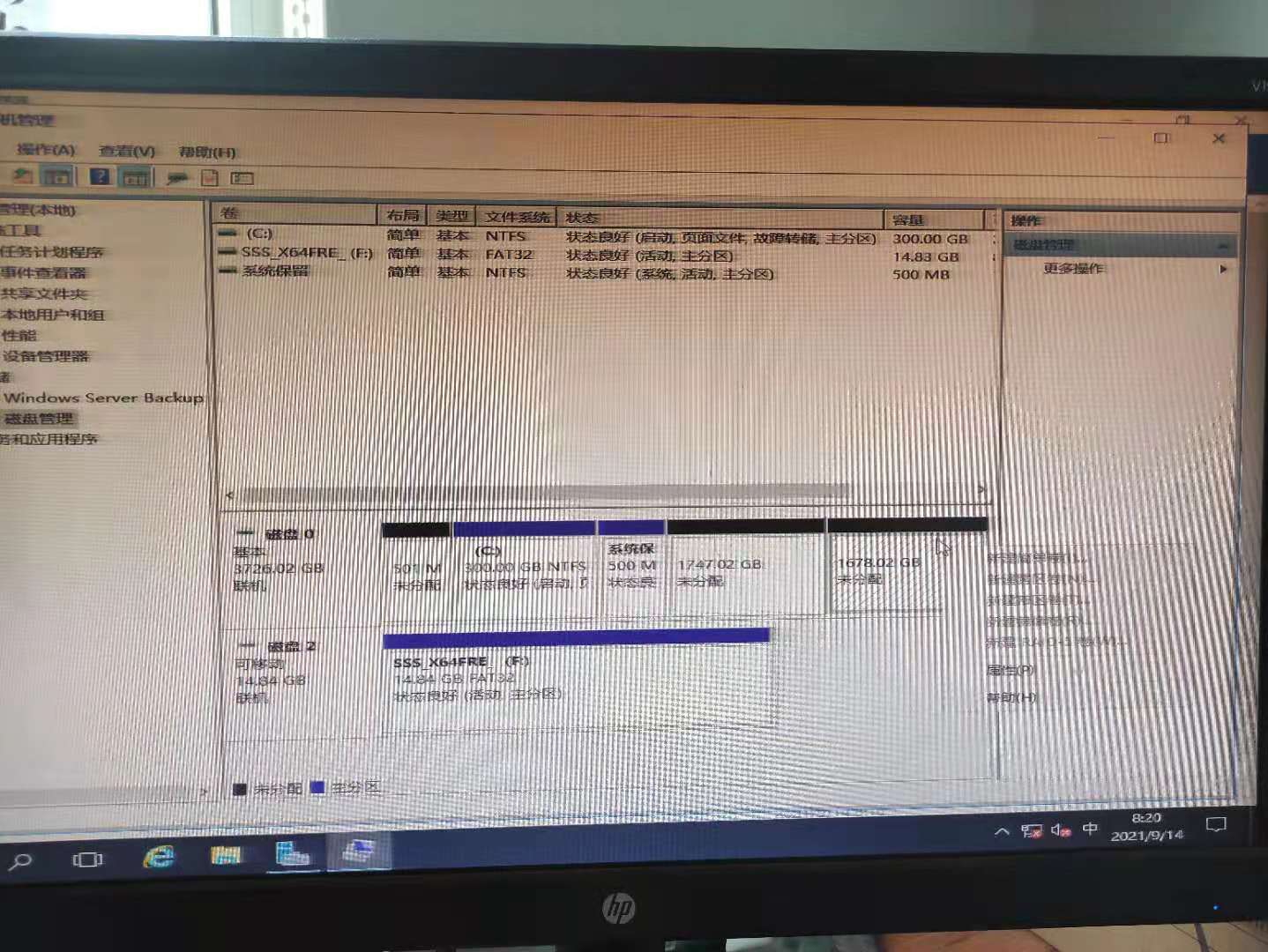 我目前是学习阶段。我现在用的服务器,是没有阵列卡的,只有一块硬盘,用的主板集成。用软碟通做启动盘,装2016系统,在打完驱动后,和装完系统后学会分区,要求c盘300g,剩下的磁盘容量两个盘平均分配。