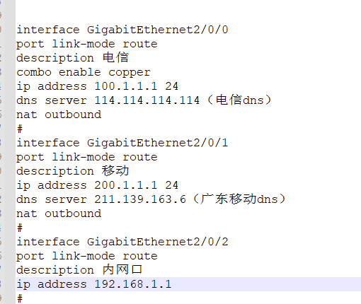 这配置不对啊,dns server设置的是设备自己的dns,想让设备替终端选择dns服务器甚至代替终端做dns解析的话应该写dns代理或透明代理啊。