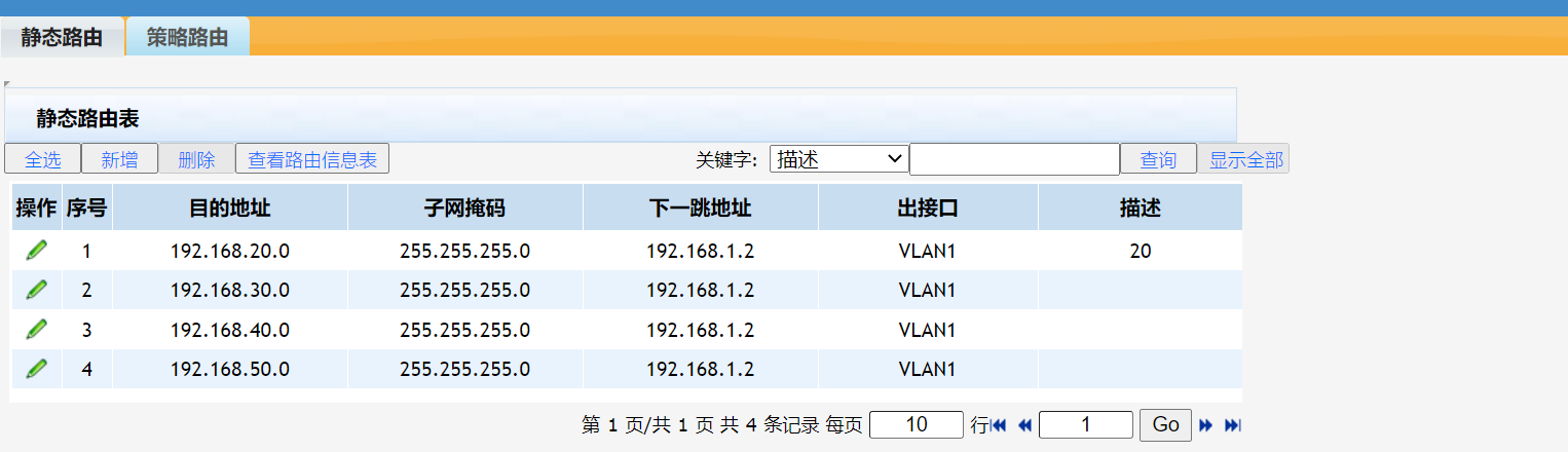 下跳静态路由设置了这些网段的网关