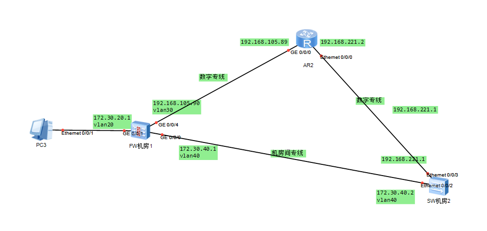 如下图所示,在防火墙1/0/4和1/0/5两个接口上配置nat outbound转换源地址,使用easy-ip方式直接转为接口地址。其中将1/0/4作为主接口, 使用默认优先级60并关联track联动探测下一跳1.1.1.2是否可达,在不可达的情况下切换到优先级为80的1/0/5备用出口。在路由器上配置回程路由,并创建Loopback:3.3.3.1作为目的地地址。