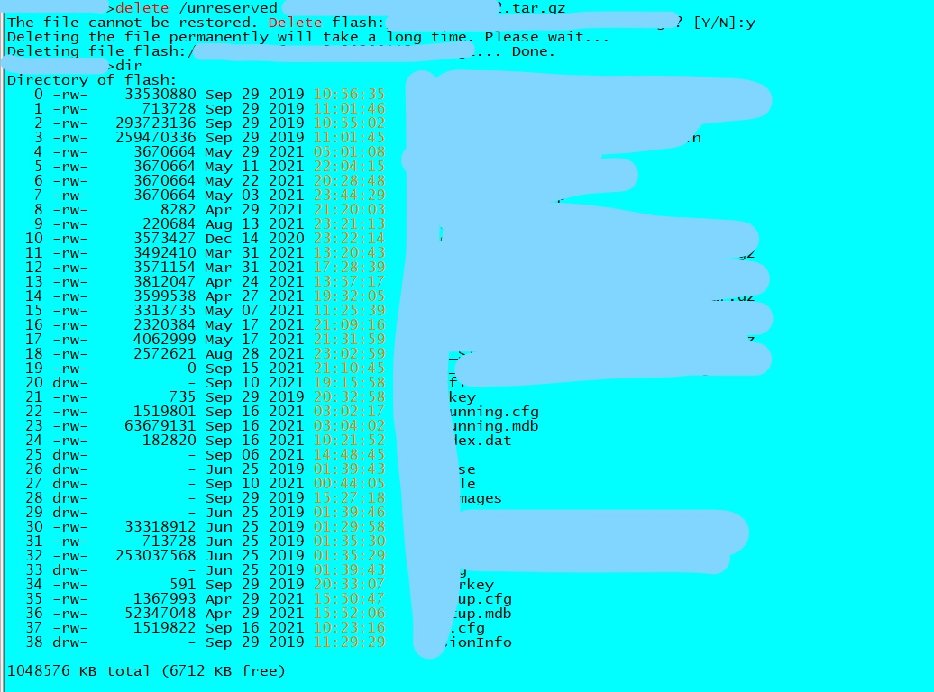 各位,在S7606上通过delete /unreserved删除多余的文件后,使用dir命令查看文件列表,发现空间还是跟原来一样,感觉删除后都没释放空间出来,这是咋回事?