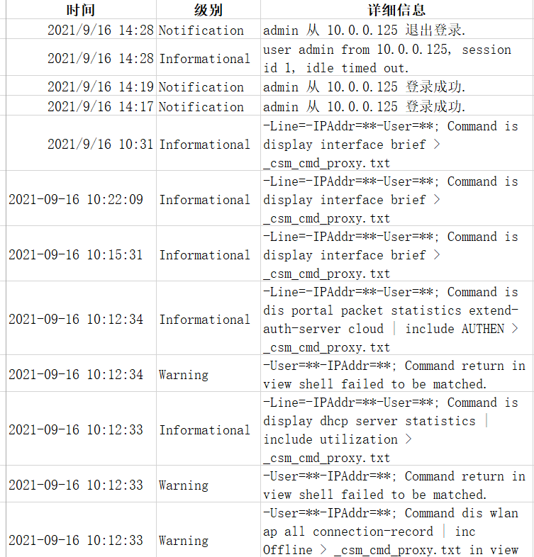 这些不是报错,而是有用户登录设备进行了相关的命令操作。