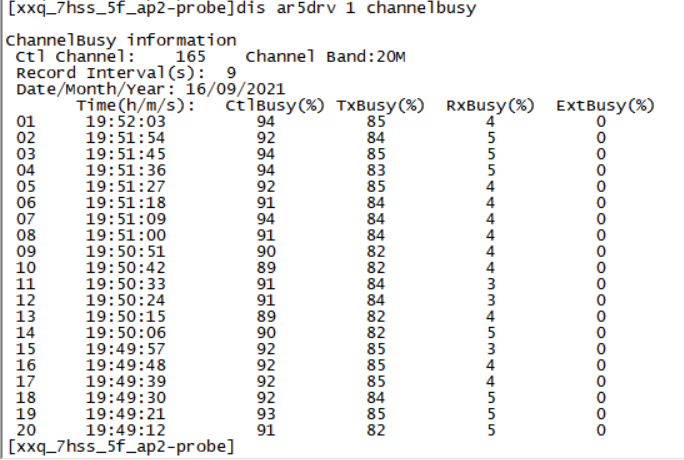 3dis wlan ap all radio 查看AP射频状态时发现一些AP的信道繁忙度经常在80%以上,偶尔会降下来,但又会升回去;登入到AP里面查看射频的繁忙度,发现tx在70-80%左右,rx在5-10%左右,tx>>rx。tx偶尔也会降下去,但在房间中用wifi魔盒未查看到其它无线信号。