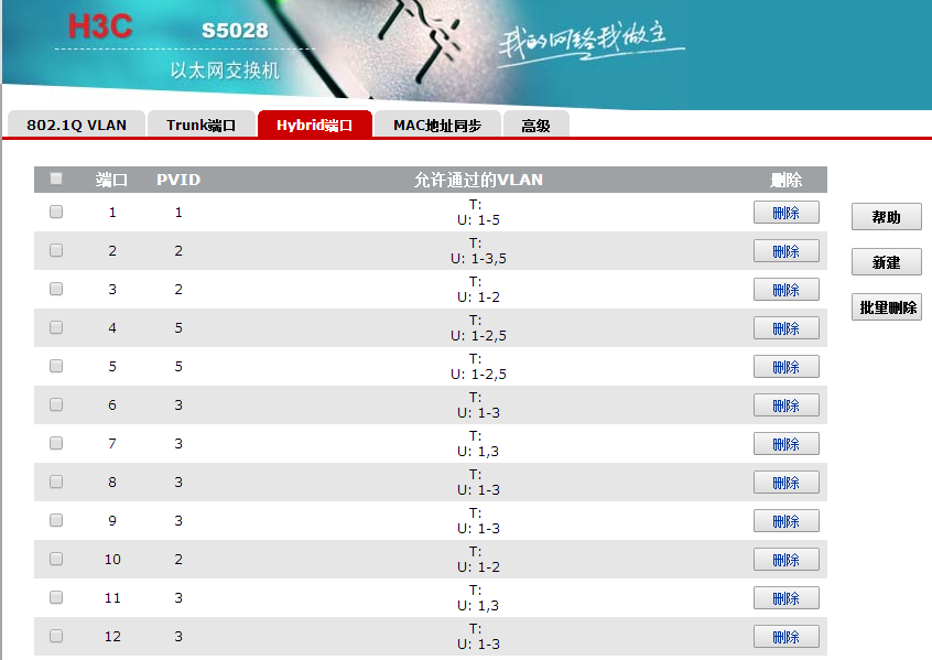 1号端口在VLAN1,1号端口接的是网关,其它端口必须通过1号端口上网,比方说2号端口在VLAN2,就得在1号端口port hybrid vlan 2 untagged并且在2号端口 port hybrid vlan 1 untagged 这样子,VLAN1和VLAN2里面就都有了1-2号端口