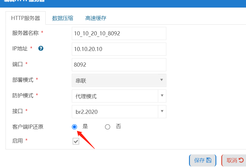 客户端IP还原 | 当防护模式为代理模式时可选择是否还原客户端IP: 是:还原客户端IP,为透明代理模式,在用户服务器上看到的访问IP均来自于外部真实IP。 否:不还原客户端IP,为反向代理模式,在用户服务器上看到的访问IP均为WAF的代理IP。 |