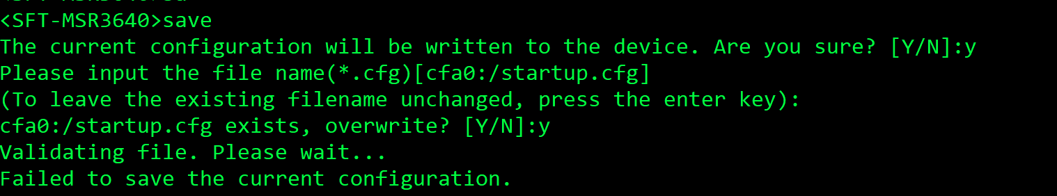 The current configuration will be saved to slot1#cfa0:/test.cfg. Continue? [Y/N]:y