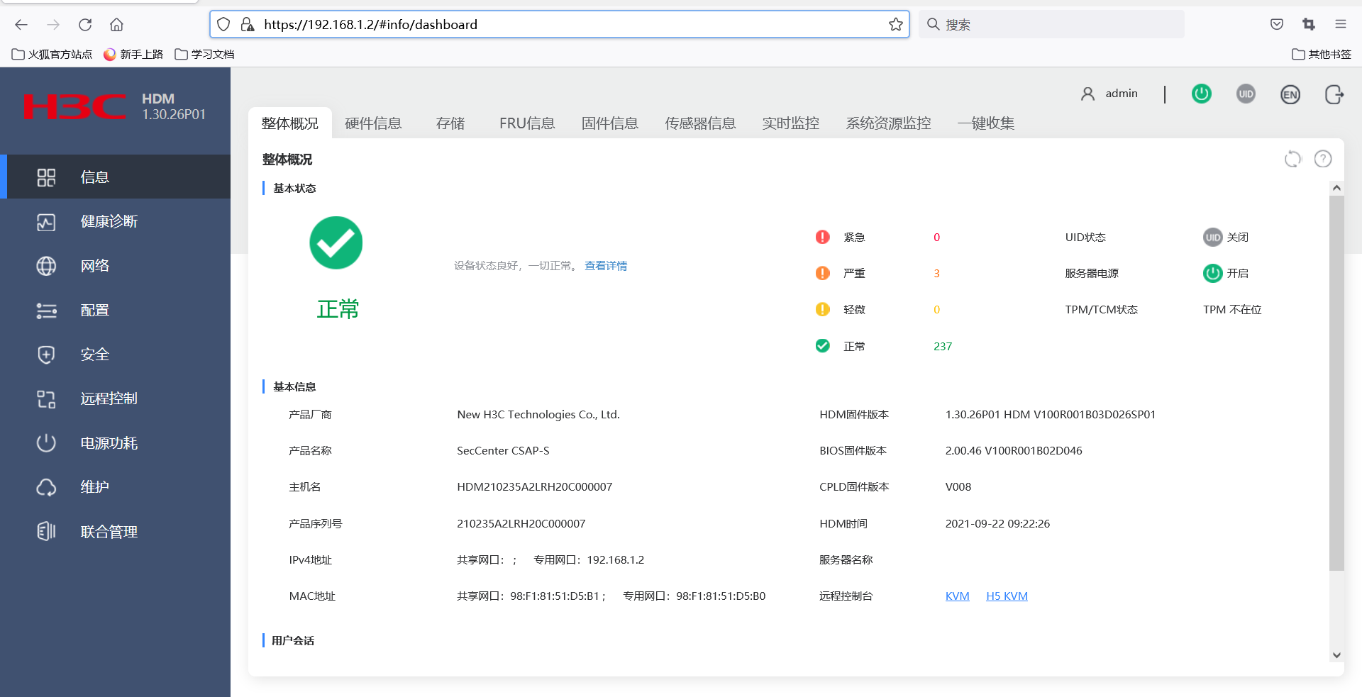 您好,你登陆的事HDM口的,正常的web界面不是HDM口登录