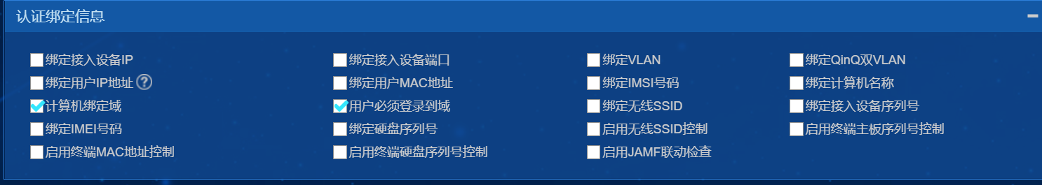 接入策略里的绑定信息是要求用户第一次登录之后,有获取到对应的绑定信息,之后用户再次上线的时候,以绑定的信息来判断是否认证通过。