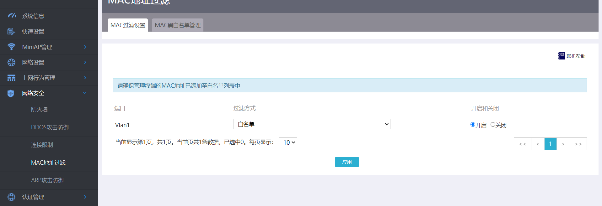 MER3220+A51-E,在3220网页管理界面设置并开启了VLAN1的MAC地址白名单,但实际白名单之外的MAC仍可以连接无线。