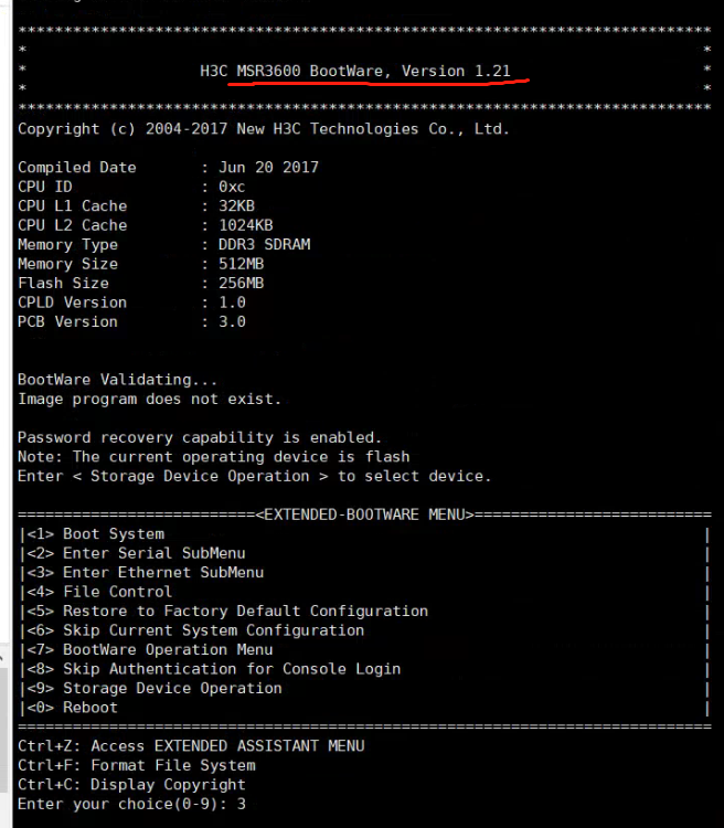 后面发现开机直接跳到EXTENDED-BOOTWARE MENU