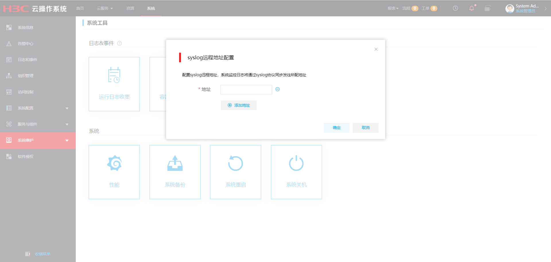 如下图所示,我在云平台这个页面配置syslog远程地址,点击确定之后页面无反应,而且刷新页面之后,这边就变成空白了,而且日志中也什么信息都没有,测试配置地址可达,请问这是什么原因