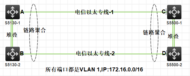 1、配置静态链路聚合,端口A、B、C、D都是up并是选中端口,但是当A或C down一个时,两端设备就不能相互访问了,当A和C一起down时,两端设备互相访问恢复;