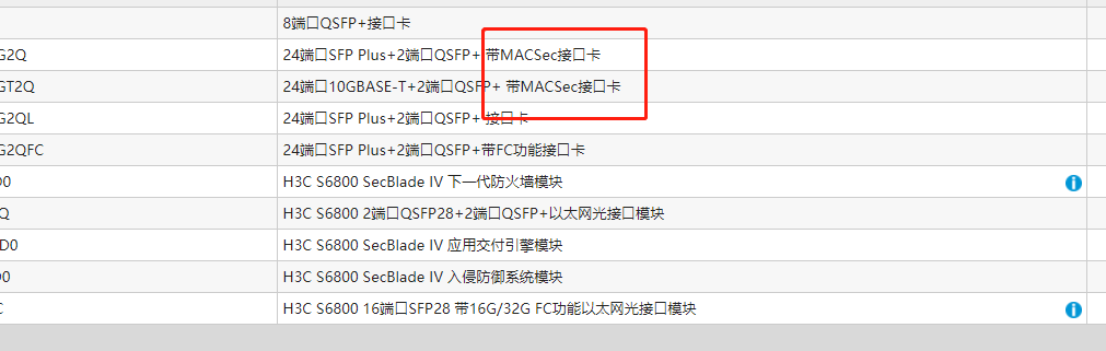 板卡支持macsec会特别备注