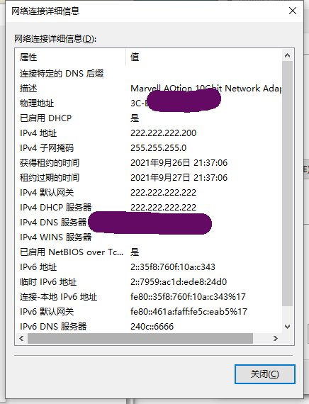 · 1::1:0:0:0/96网段内的地址租约时长为172800秒(2天),有效时长为345600秒(4天),域名为***.***,DNS服务器地址为1::1:0:0:2/96;