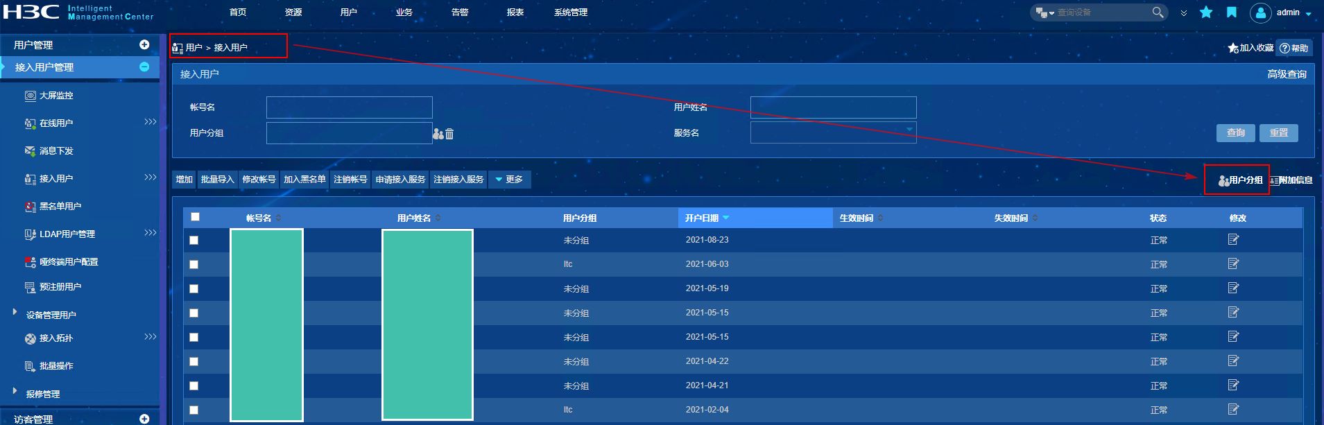 哪里设置可以给接入用户分组的用户分组