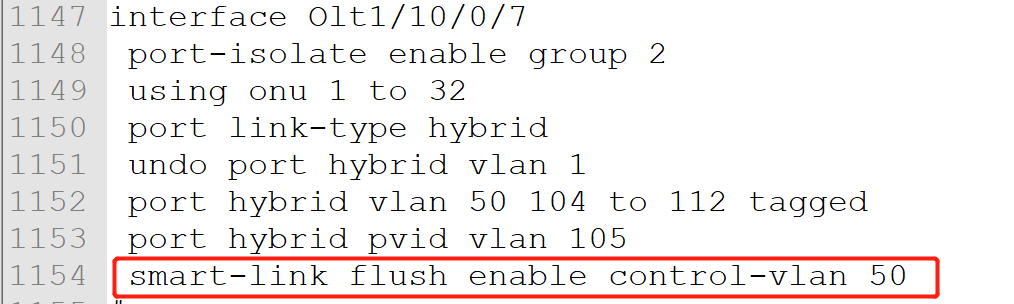 smart-link flush enable命令用来使能接收Flush报文的功能 , control-vlan vlan-id-list:表示接收Flush报文的控制VLAN,缺省值为1