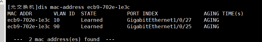 那好像没法看了 可以顺着这两个接口往下排插 看看为啥能学习到同一个mac地址