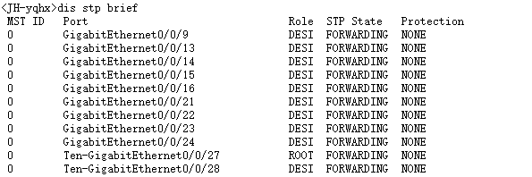 之前27号端口下联一台交换机,频繁有stp告警,我把下联交换机查了一下,有几个端口频繁up/DOWN,我拔掉这几个端口以后,没有告警了。但是上联交换机这里role显示27端口为ROOT,我想问这个是什么意思?有没有影响?