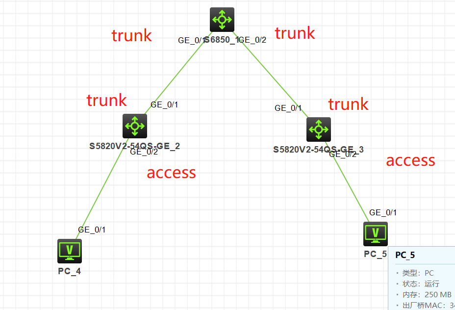 我模拟器上面拉了图 然后核心到接入做trunk 然后接入到核心也是trunk 两边都是vlan all的 然后接入到终端是access 然后dhcp地址池在核心上面