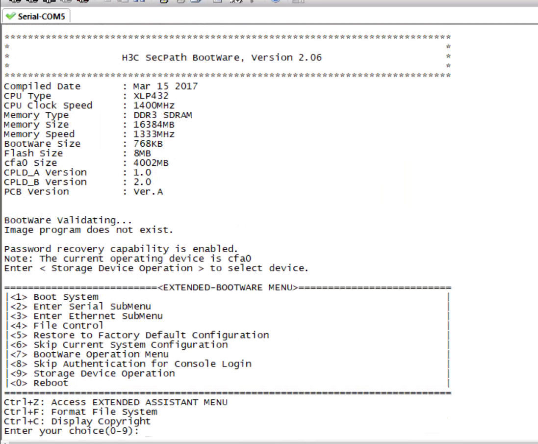 2、如果所有密码都忘记了,可通过重启,按下“ctrl+b”进入bootrom,选择跳过console密码选项进入设备后修改。