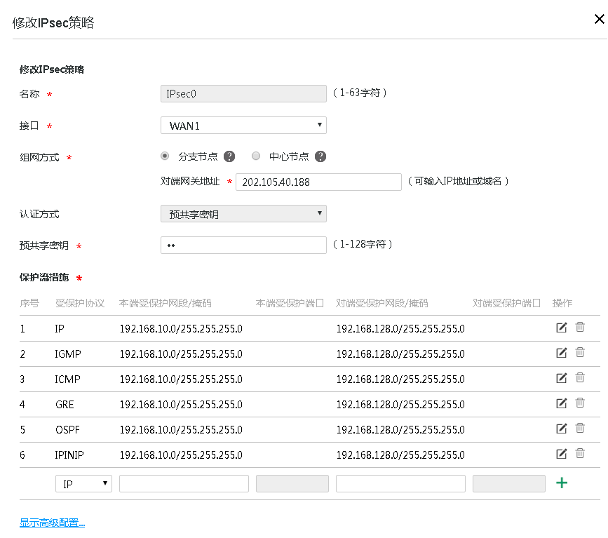 ipsec vpn 保护的er等内网数据,两边私网互通,不是一边er直接另一台er的