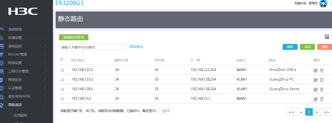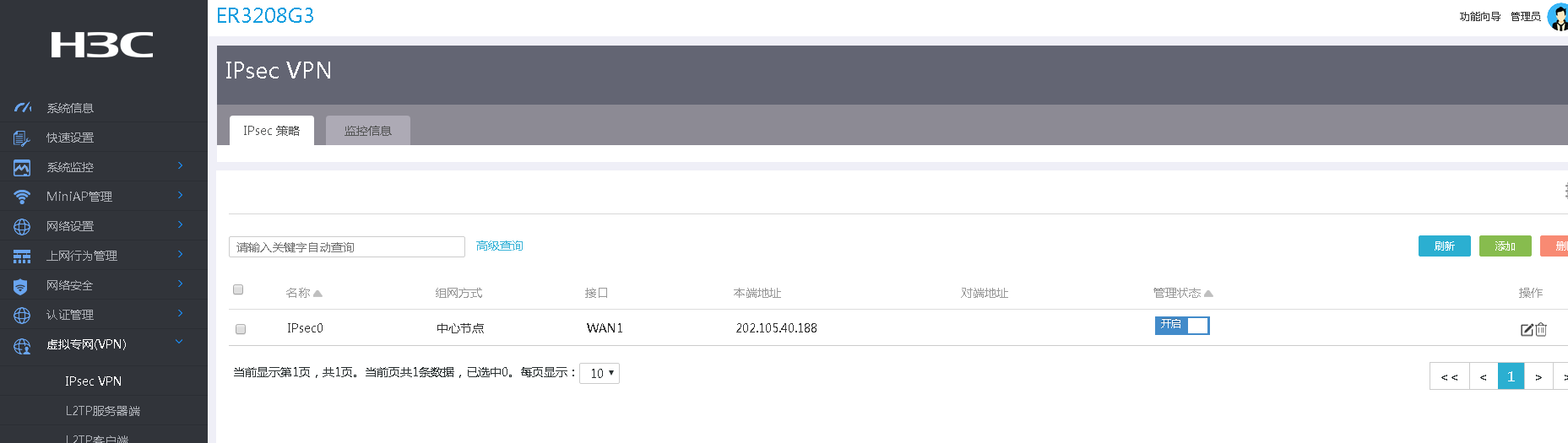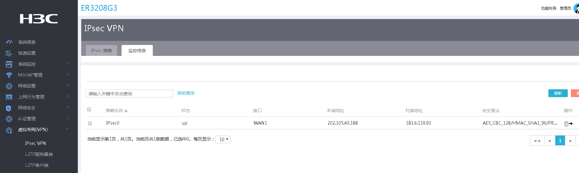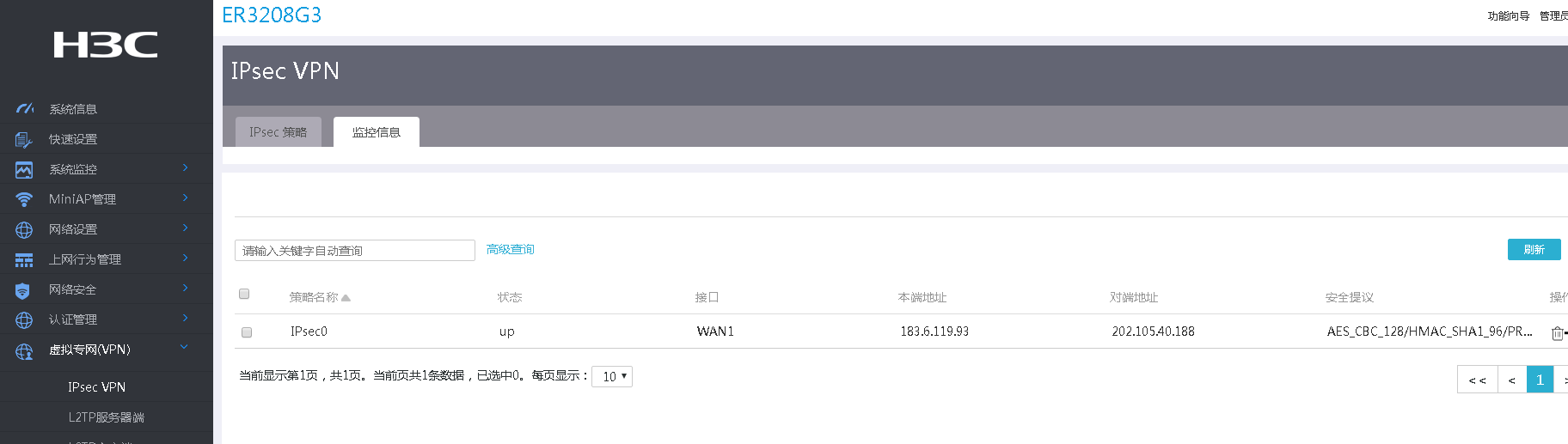 我买了两台ER3208G3,已经配置Wan口和Lan口,都能带机上网,现在想通过IPsec VPN相连,两地分别配置成中心节点和分支节点,监控信息也显示连上了,为何用网络诊断,无法ping通对方的Lan口IP地址? 求大神帮帮我,谢谢