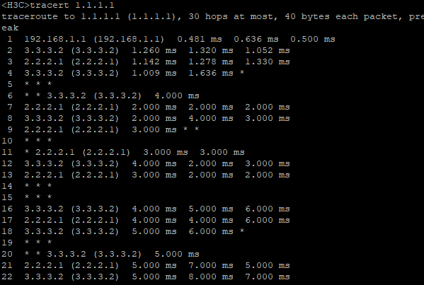 2.tracert 1.1.1.1 发现流量一直在打环,这是什么原因造成的?有何解决办法?是否为配置错误?