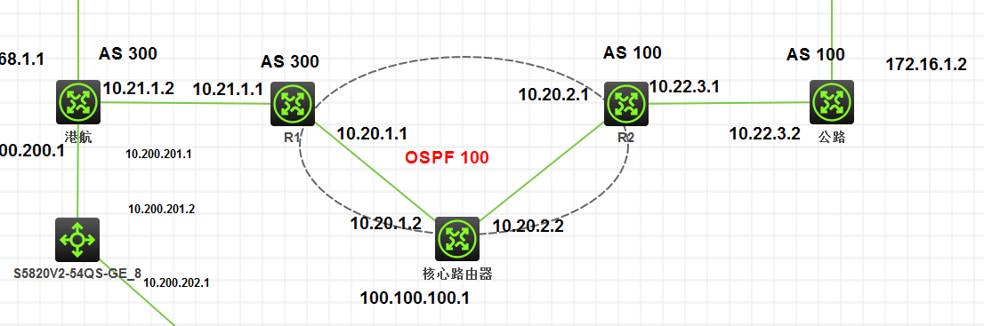 在R2 ospf 100 里面 import-router bgp 在核心路由器里面也看不到。