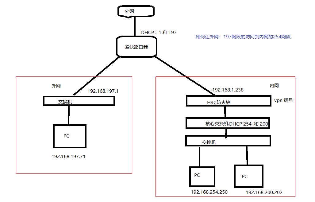尝试一下你197网段的vpn客户端设置为vpn网关改为192.168.1.238,原本应该为公网IP地址。