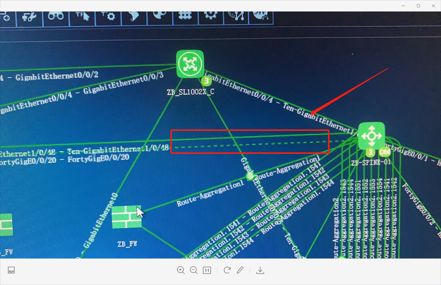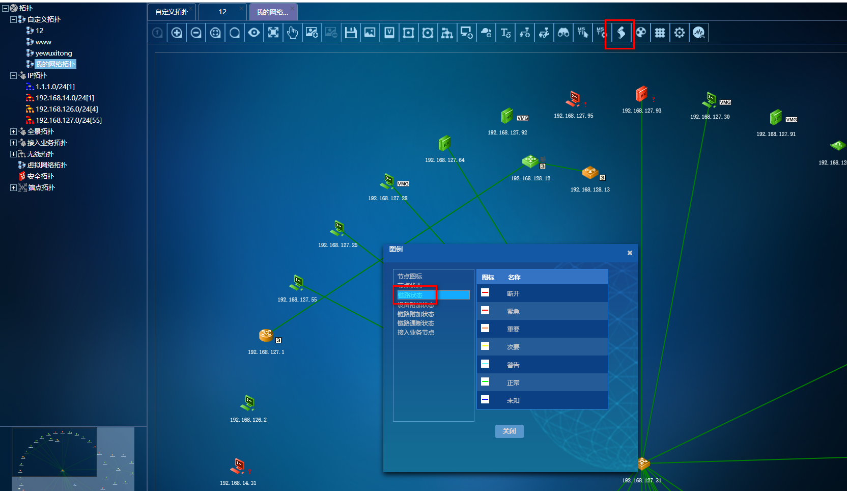打开网络拓扑右上角图例查看链路状态解释。