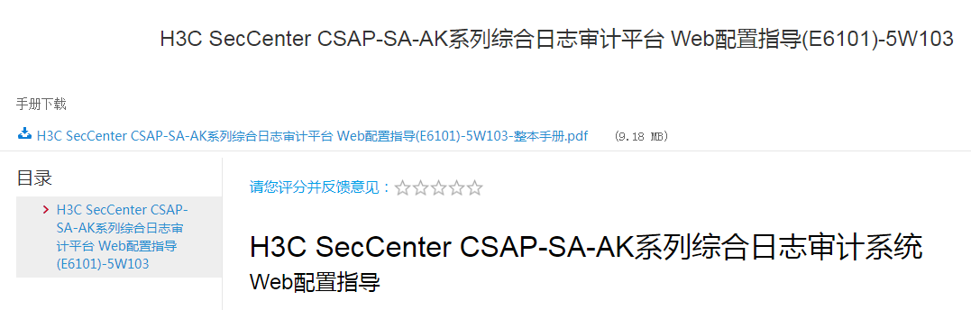 https://www.h3c.com/cn/Service/Document_Software/Document_Center/IP_Security/SecCenter/H3C_CSAP-SA-AK/Configure/Operation_Manual/SecCenter_CSAP-SA-AK_WCG(E6101)/?CHID=521426