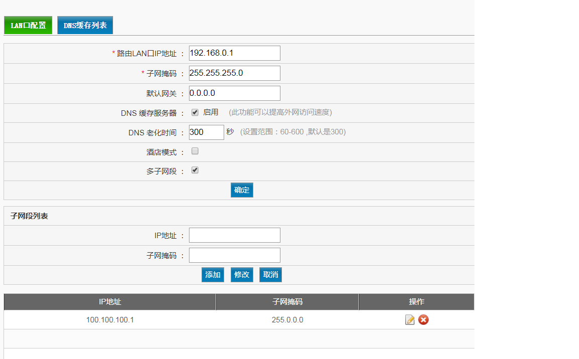(1) 单击导航树中[网络设置/LAN配置]菜单项,进入LAN配置页面。