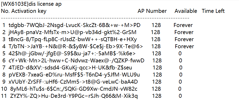 敲了dis license ap 显示Available有显示Forever也有显示0的,显示0是什么意思?forever又是什么意思?