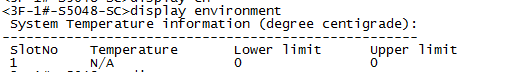 这两款交换机内有温度传感器吗?通过命令display environment显示N/A或者0如下图,请各位大佬科普一下,因为我们用zabbix监控显示温度高警告