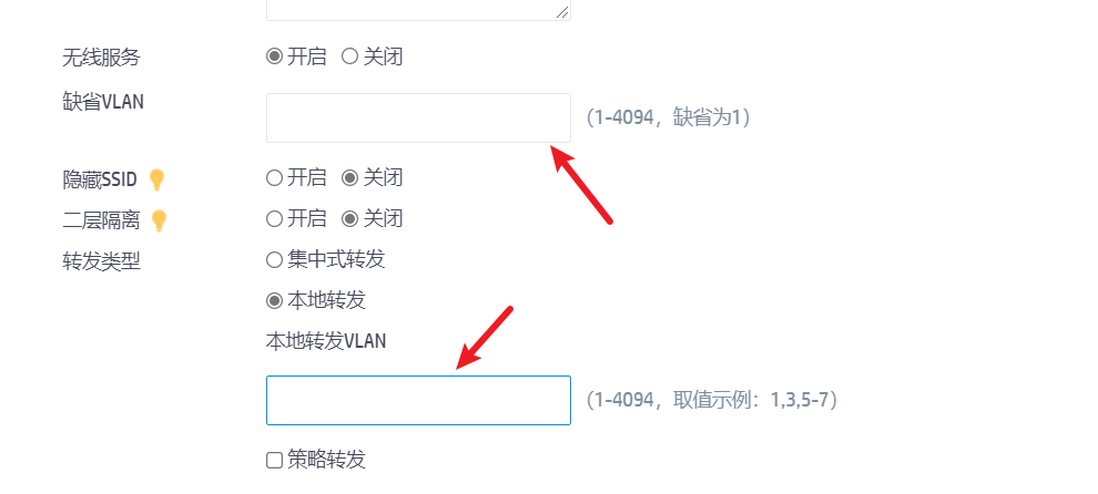 本地转发的话这两个vlan应该怎么填 那个填业务那个填管理