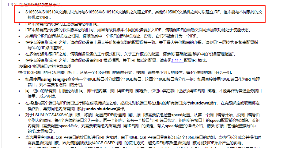 用户当前使用10506,新采购10506X,两台设备能否形成IRF
