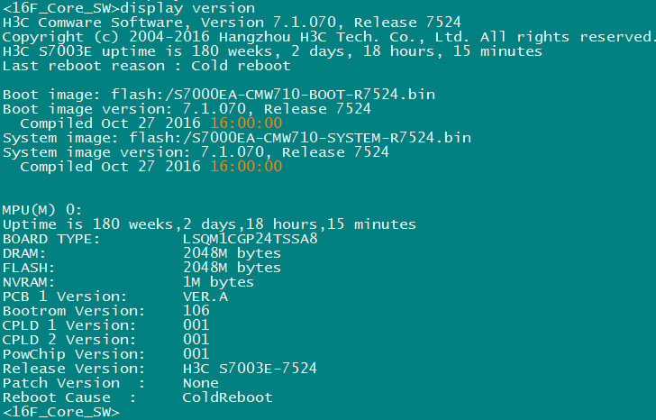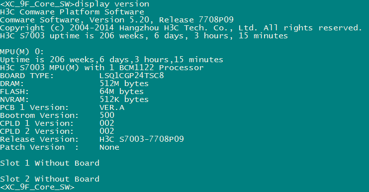 各位大大,现有一台H3C S7003E准备报废,软件版本是:Version 7.1.070, Release 7524,板卡是LSQM1CGP24TSSA8