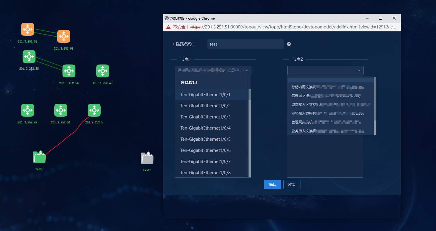 在自定义拓扑里新增一个文件夹,如何选择一台交换机连接这个文件夹(像红线这样),我记得1.0是可以的。