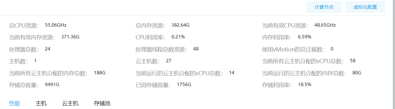 1、集群页签,CAS参数很少,而且存储只展示本地存储,无共享存储展示