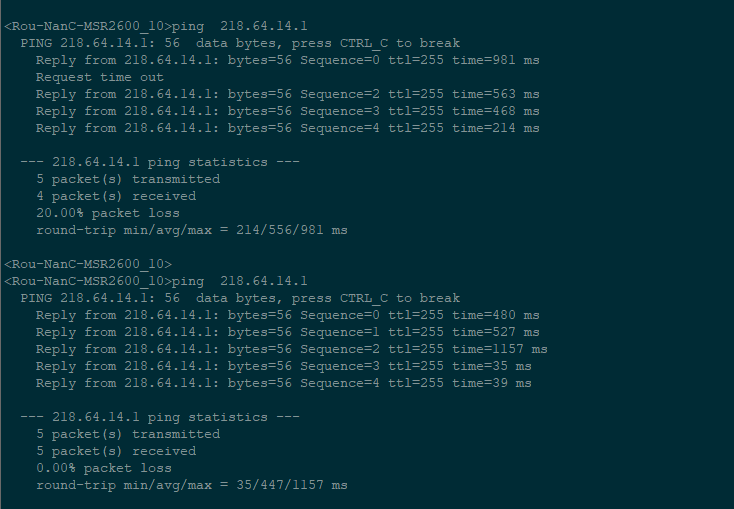 意思是ping电信网关延迟大,但是ping外网其他地址正常是么。