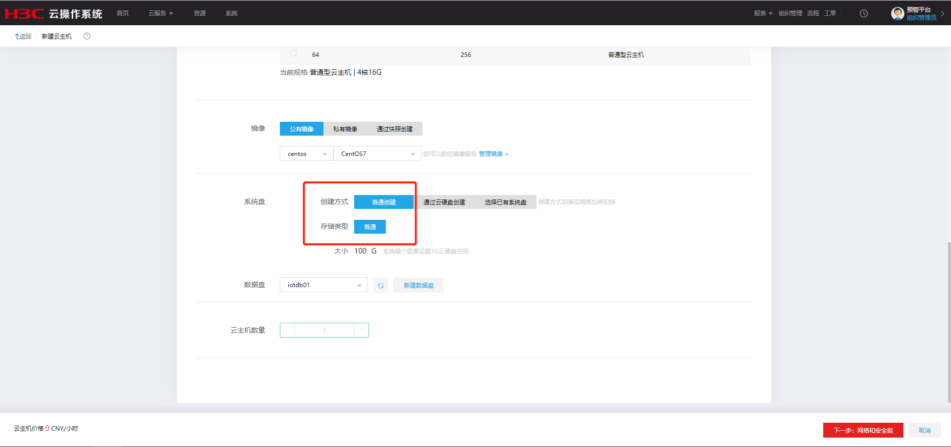 是不是还没有创建云主机规格和组合规格,只有100G的组合规格吧。