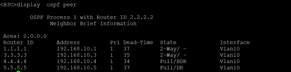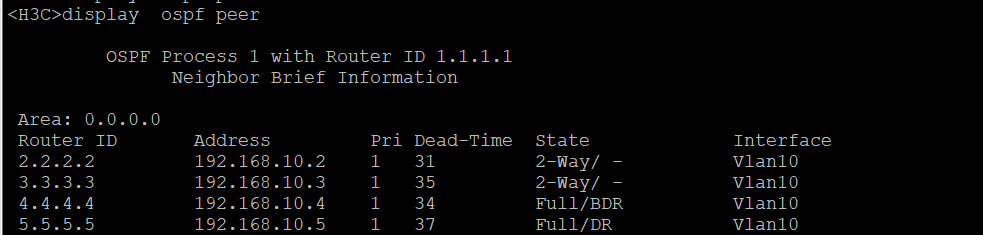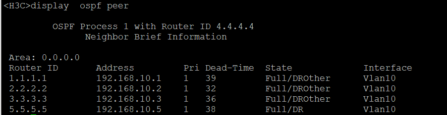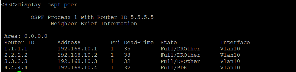 经查看 SW5为DR,SW4为BDR,其他的为DROther。