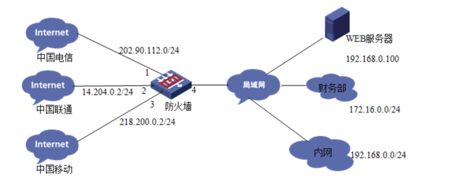1)要求内网用户访问目的地址为移动链路数据从移动链路转发、访问目的地址为联通链路数据从联通链路转发、访问目的地址为电信链路数据从电信链路转发需求。