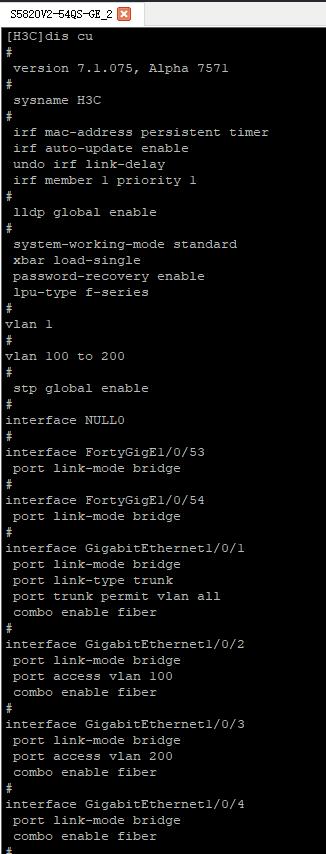 GE1交换机配置如下图