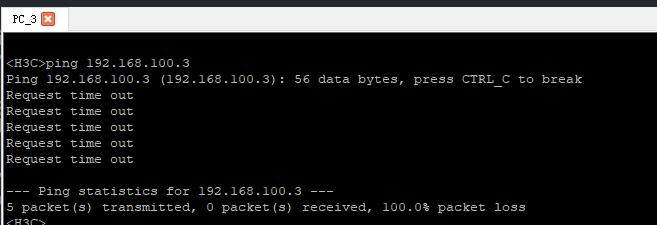 从PC2上PING192.168.100.3,显示如下图,
