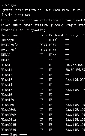 出接口是三层口,现场是vlan-interface三层互联,所以出接口是vlan,如果要查实际的物理口就看arp